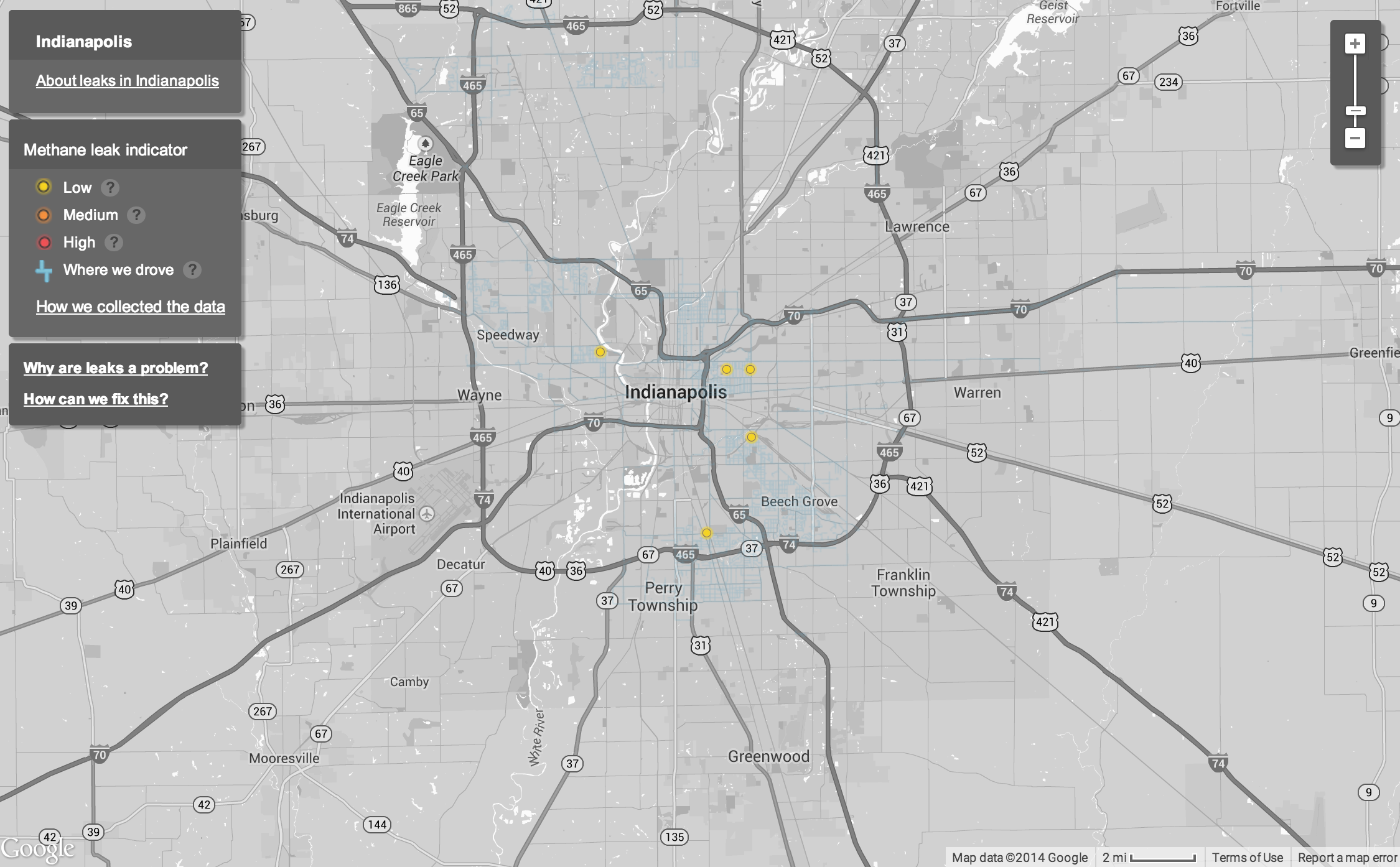 Supposing you live in one of the very few cities Google and the EDF have mapped natural gas leaks in so far, you may be super relieved or super baffled by the results you're about to see. Boston, Indianapolis, and Staten Island, New York have been mapped so far. Boston, we've got some bad news. Indianapolis, turn your smiles on.