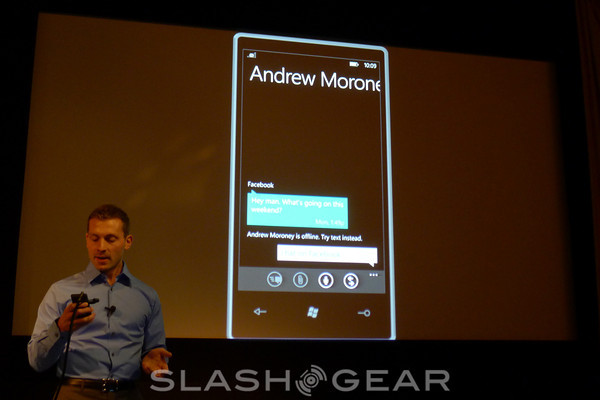 Additionally, if a user wants to send a message to someone, Mango will automatically detect if that person is online to the user can select the best method of communication. If the intended recipient is signed into Windows Live, Mango will provide the option to send an instant message (IM). If not, a text is sent instead.