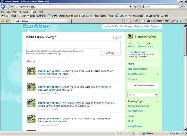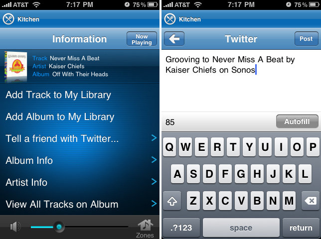 Examples of what the tweets will look like are in the gallery below, together with screenshots of the iPhone app and the CR200 app. When it sees its public launch, Sonos System Firmware v3.1 will be a free upgrade to all users.