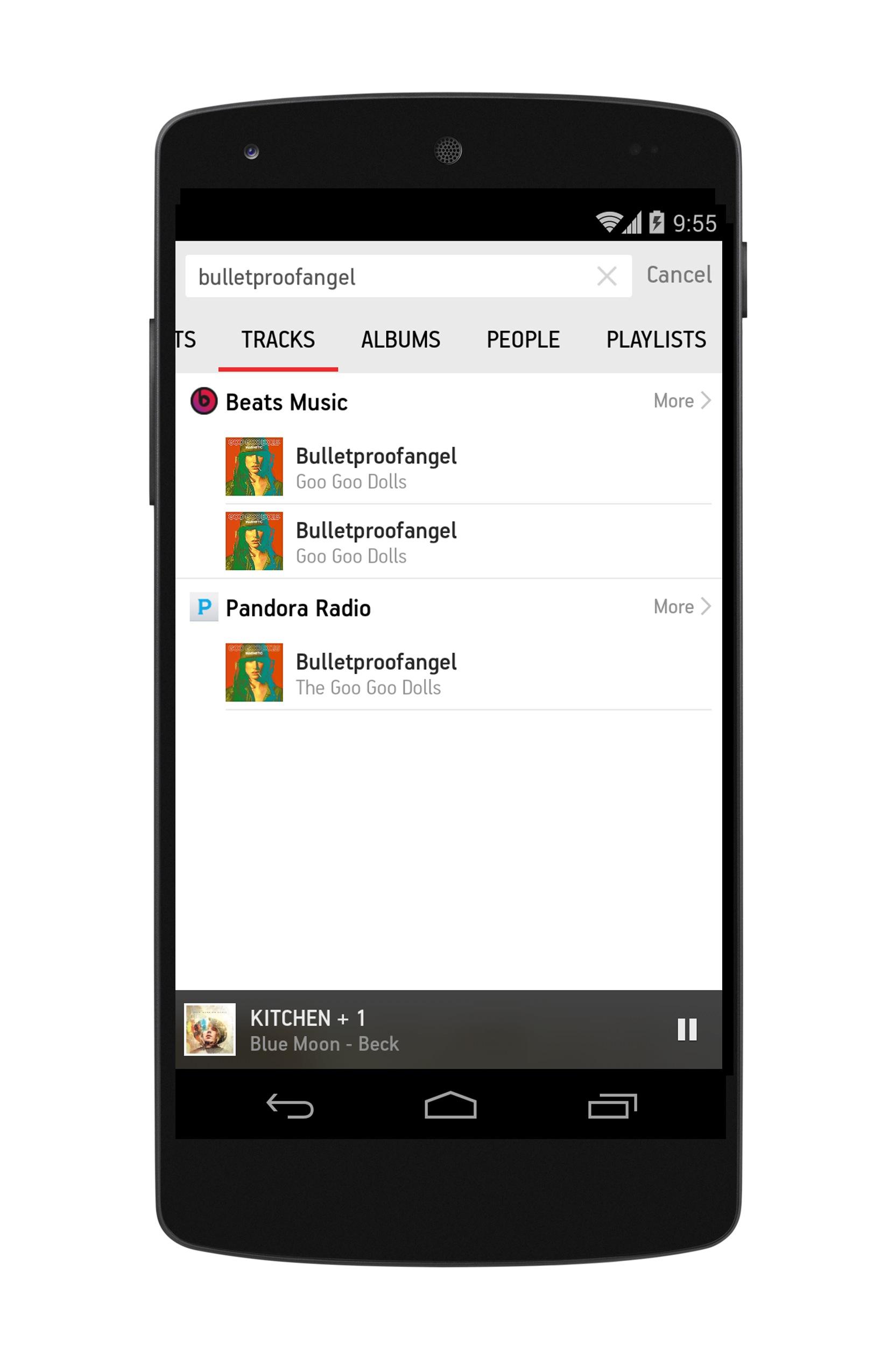 Typing in the search bar will query not only local music, but on-demand providers if you're registered with them, along with radio stations and more.