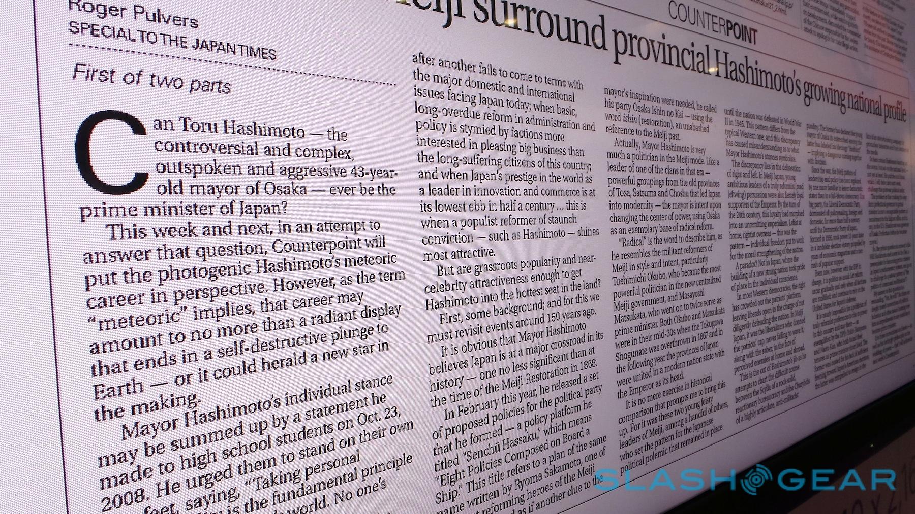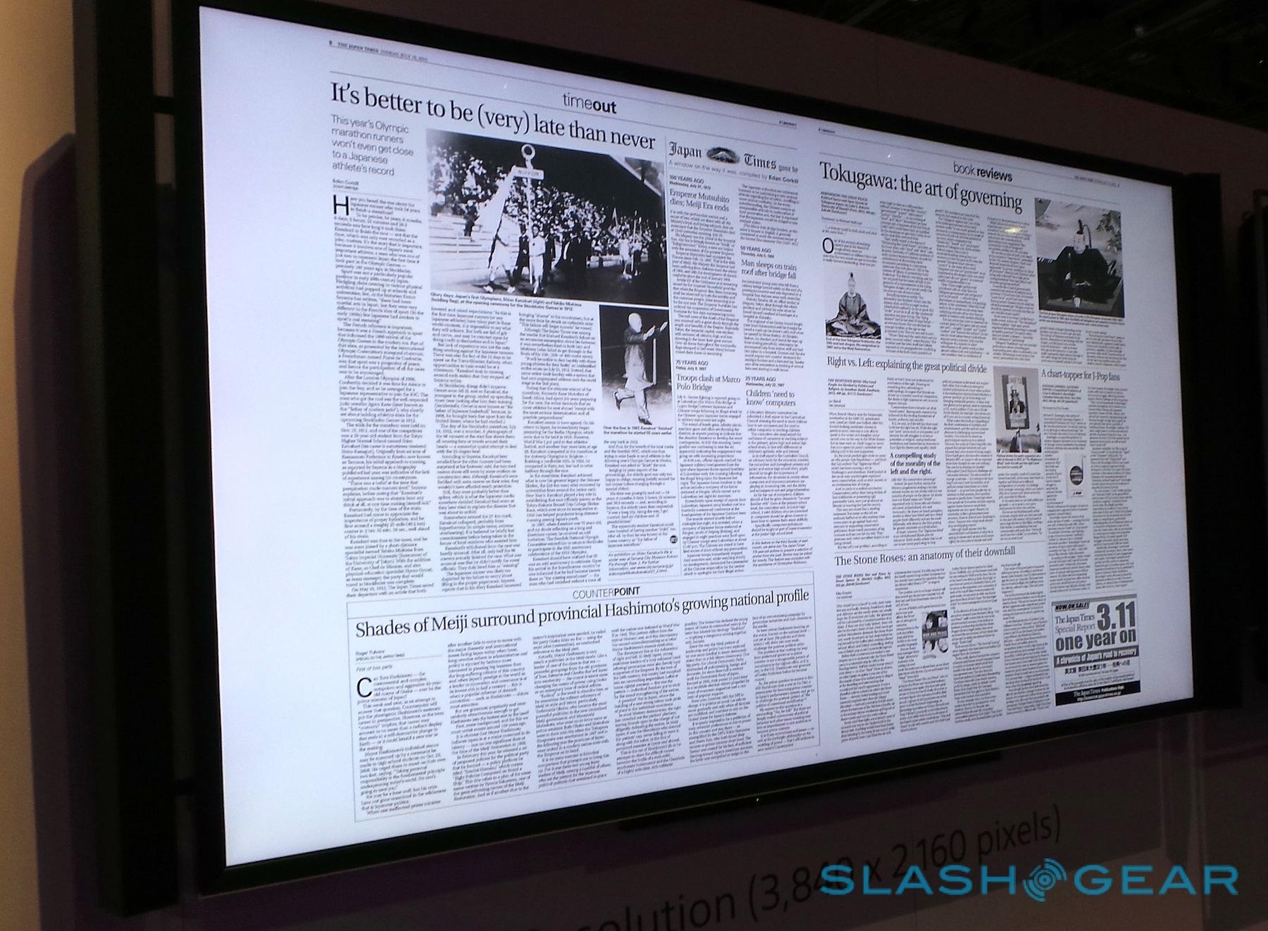 As for what that 3840 x 2860 resolution can do, Sony had a display showing a full newspaper spread on a single display, with all the text legible. There's a close-up shot in the gallery below.