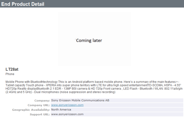 Sony Ericsson LT28at AT&T Android Phone Leaked, 13 Megapixel Photos Included