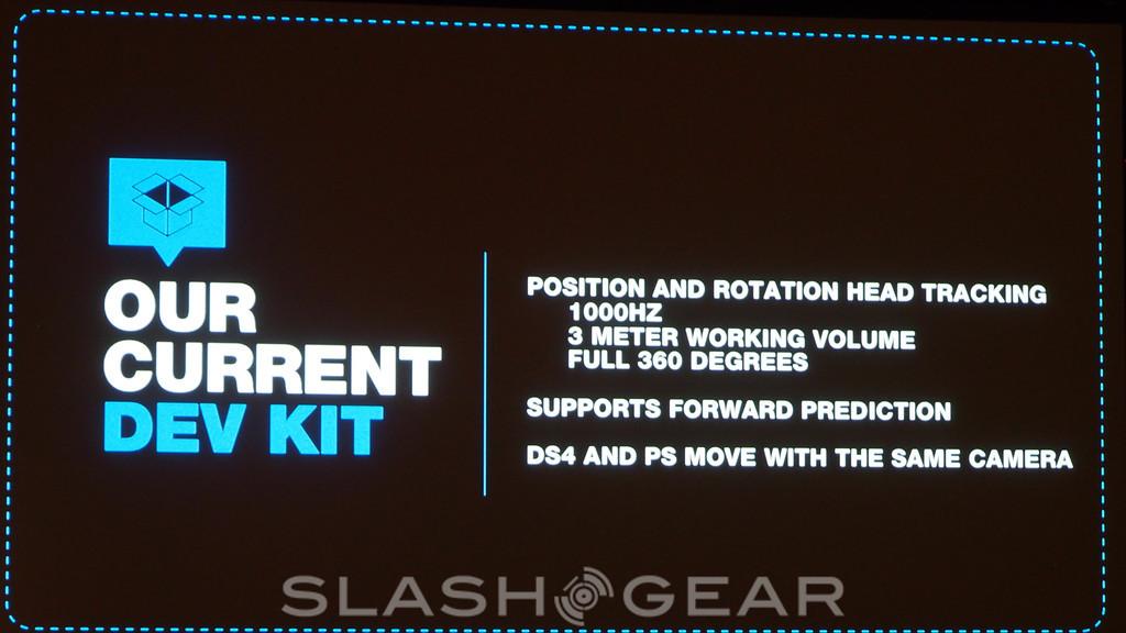 As for head-tracking, Sony uses position and rotation tracking, with a 1,000 Hz refresh rate and three meter working volume. It's full 360-degrees, too, with markers on the rear of the headset, and Sony supports forward prediction too. DS4 and PS Move also use the same camera for an easier setup.