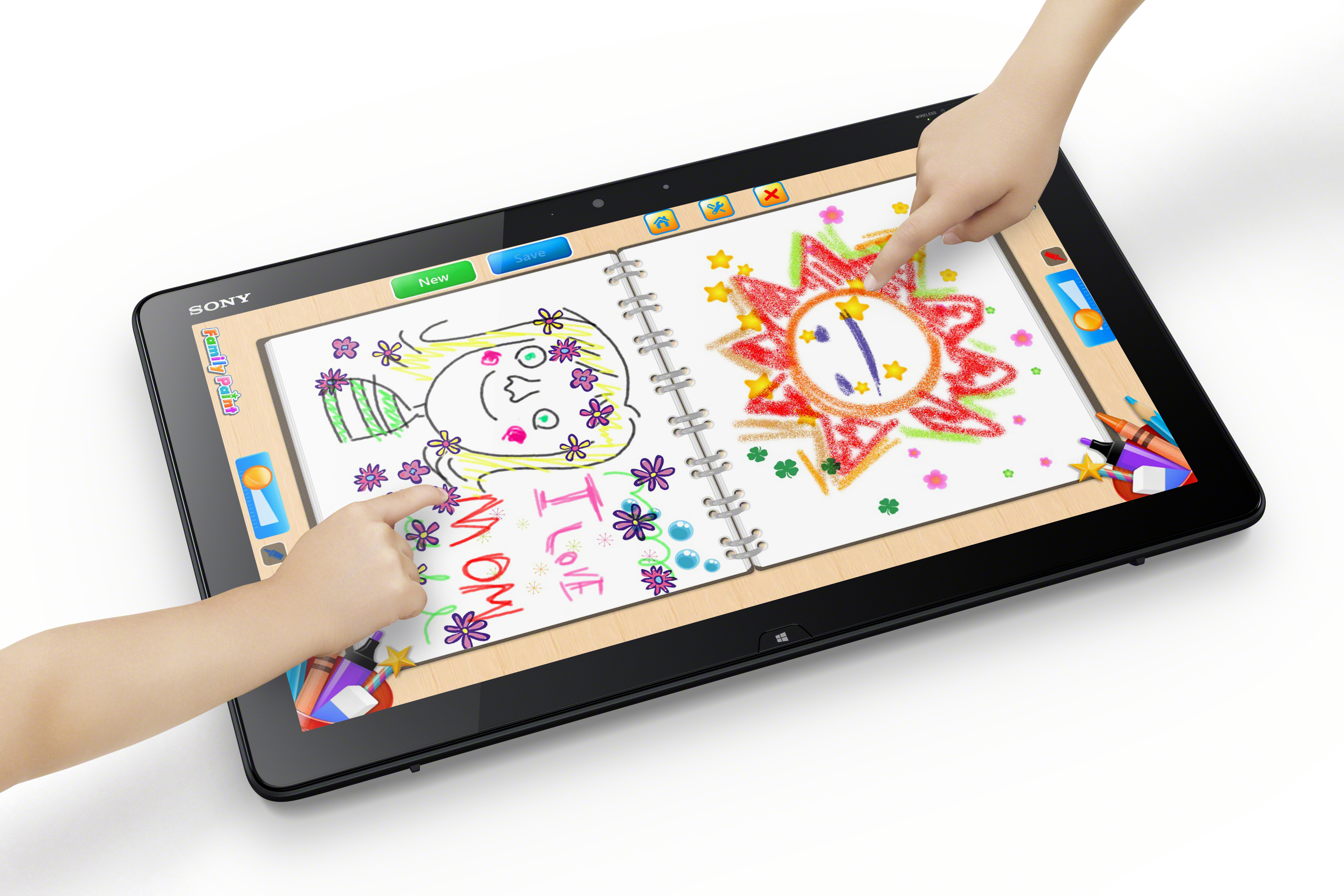 As a bonus – especially for artists and graphic designers – Sony partnered with ArtRage, and will provide a copy of ArtRage Studio on all five of these new touch-enabled devices. In addition to ArtRage, the VAIO Tap 20 will include the FingerTapps Organizer, a calendar/organizer app designed to allow families to easily share notes and events with each other, perhaps an indication of who Sony's primary intended market is. In line with the family-oriented apps, the VAIO Tap 20 will also include My Daily Clip, an app developed in partnership with Sony Pictures Home Entertainment that allows individuals to sit around the tablet and play a movie trivia game.