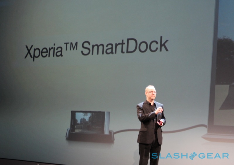 There's also the same NFC Smart Tag system as in the Xperia S, using small NFC-enabled fobs to boot into different modes as well as mute the ringer. Sony will also offer a Media Dock for HDMI output to your big-screen TV, and you can shoot Full HD video with the 8-megapixel camera.