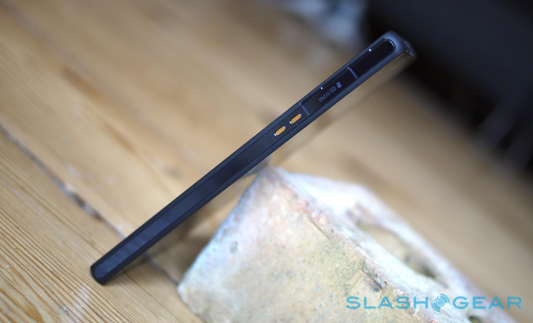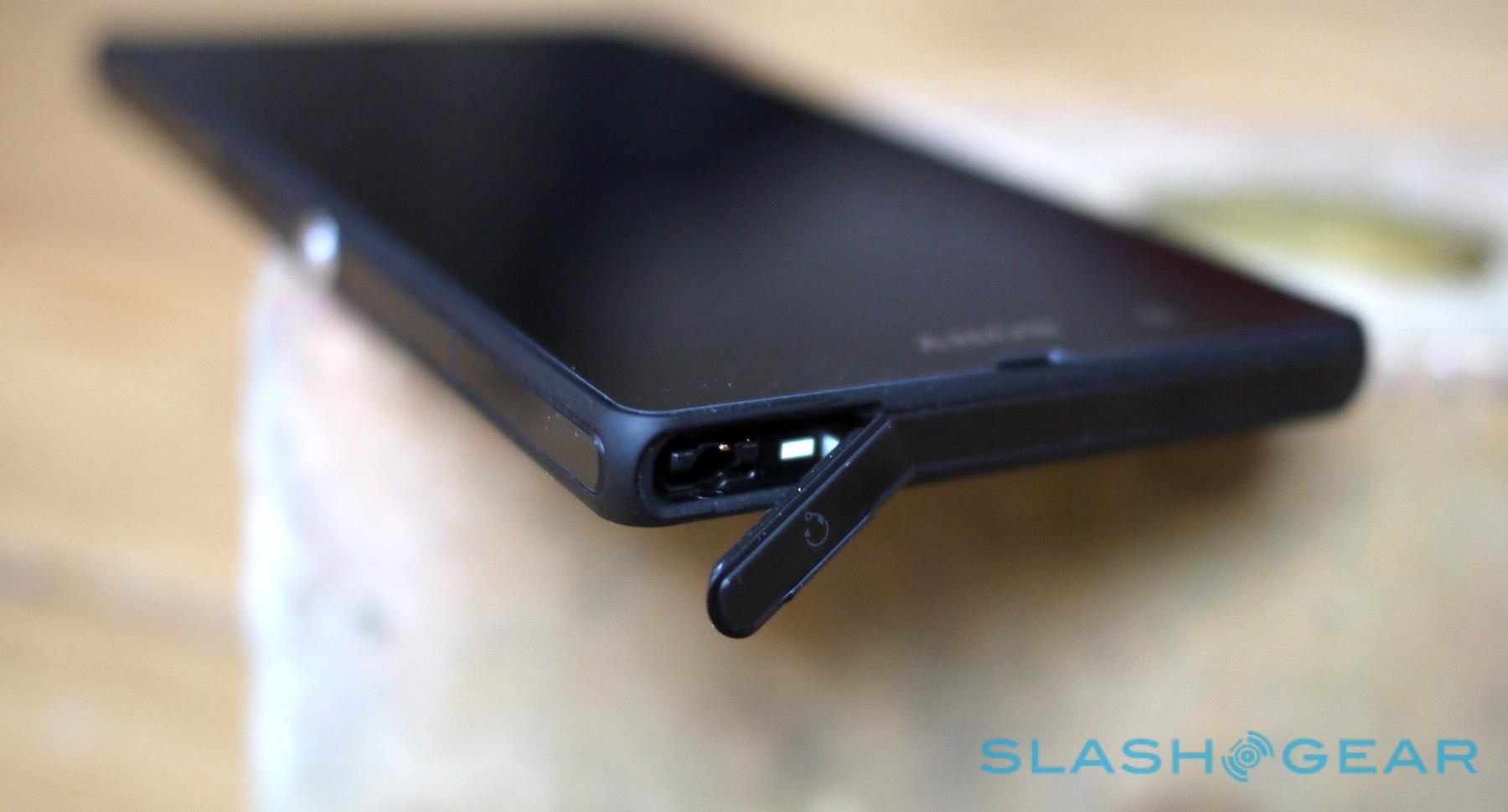 Still, you get that water resistance from it, and that's a welcome addition. The Xperia Z meets IP55 and IP57 standards, meaning it'll survive a dunk in up to 1m of water, being squirted with water jets, and the ingress of dust (which can play havoc with electronics). However, it also means that Sony has been liberal with ports, flaps, and hatches, since the resistance ratings are only met when the body is sealed up. The headphone socket on the top edge has a flap; the microSD and microUSB ports on the side each get their own flaps; and the microSIM slot has a flap too. If any of them are open, you lose your water and dust-resistance, which means if you're listening to music with wired headphones and accidentally drop the Xperia Z in a puddle, there's a fair chance it'll stop working.