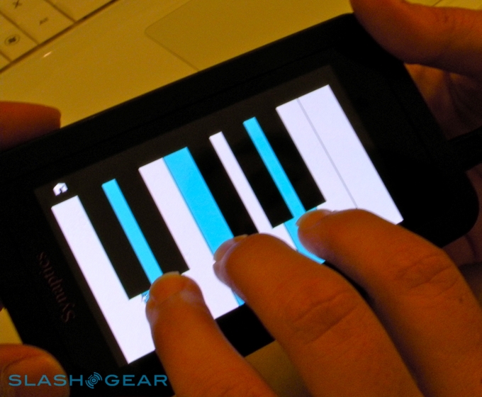 As part of their demo, Synaptics showed us an iPhone-styled reference design which could track pretty much as many fingers as you could squeeze onto the screen. It also featured a new app-closing gesture, crumpling up the app, together with a more accurate on-screen keyboard which supports two-finger key modifiers such as holding down shift or control while typing capital letters or symbols.