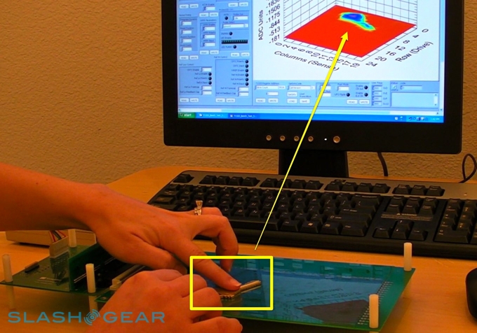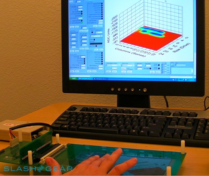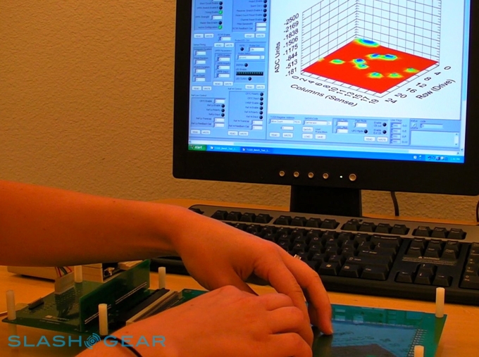 Synaptics invited SlashGear to their headquarters in Santa Clara this week to take a look at their latest capacitive touch-panel technology. The company has rebranded their existing ClearPad capacitive system to ClearPad 2000, so as to make room for their new flagship ClearPad 3000. This new panel can recognize up to 10 simultaneous finger touches together with complex multi-finger gestures such as pinch, pivot-rotate and rotate, with reduced latency and increase accuracy over what we've seen from capacitive panels to-date.Video demo of ClearPad 3000 after the cut