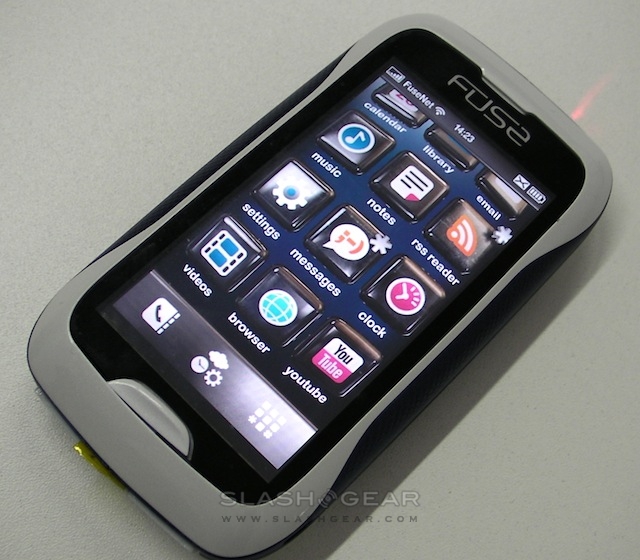 The concept behind Fuse is that a touchscreen and/or D-pad is not always the best way to control a mobile device, especially if you're trying to do so single-handed. Instead, Synaptics have used their various sensor technologies to suggest alternative paradigms for use: the Fuse has a capacitive touchscreen, but it also gets accelerometers, a rear-panel trackpad and side-mounted pressure sensors.