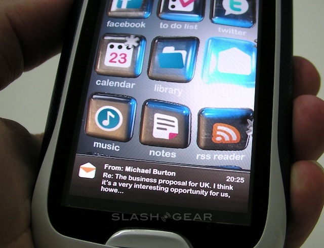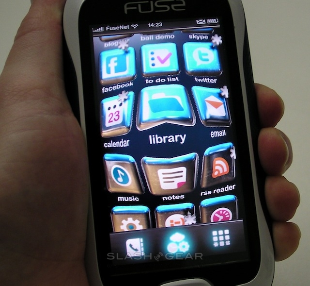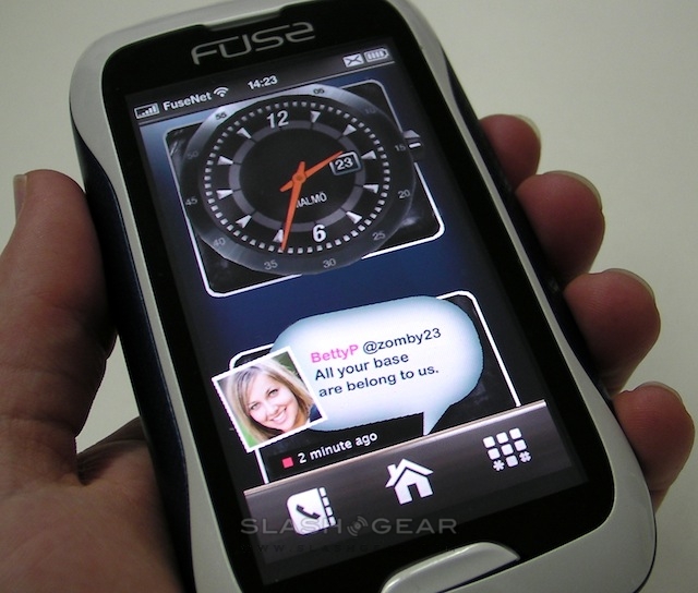 There's some pretty complex rendering going on inside, too. As you move the Fuse from side to side, the lighting pans across the 3D icons accordingly. Thanks to the accelerometers you can tilt the handset 45-degrees and have the widgets tip over as if about to tumble off; a flick on the touchscreen then rotates them round, meaning each widget has twice as much space to display data.