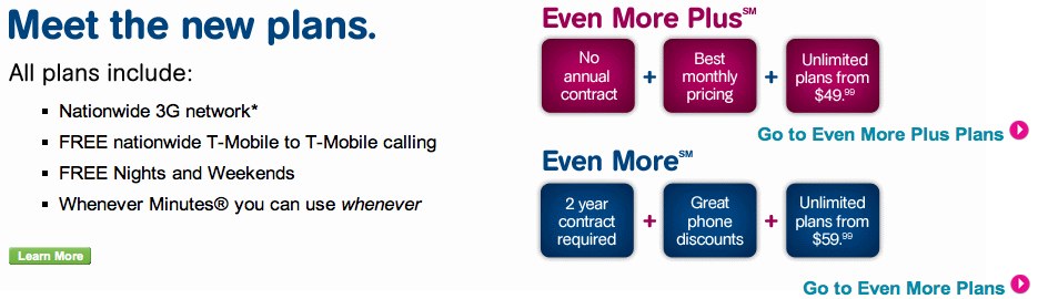 Remember T-Mobile Project Dark and the leaked shots purporting to be new price plans for the US carrier? Well, now there's official confirmation of the new contract and non-contract packages, hoping to lure those looking only for heavy upfront subsidies to a non-contract plan with equipment payments by installments. The new T-Mobile Even More and Even More Plus plans kick off at $59 and $49 respectively, the former offering the more traditional device subsidy along with a two-year agreement, while the latter does without both the subsidy and the contract.
