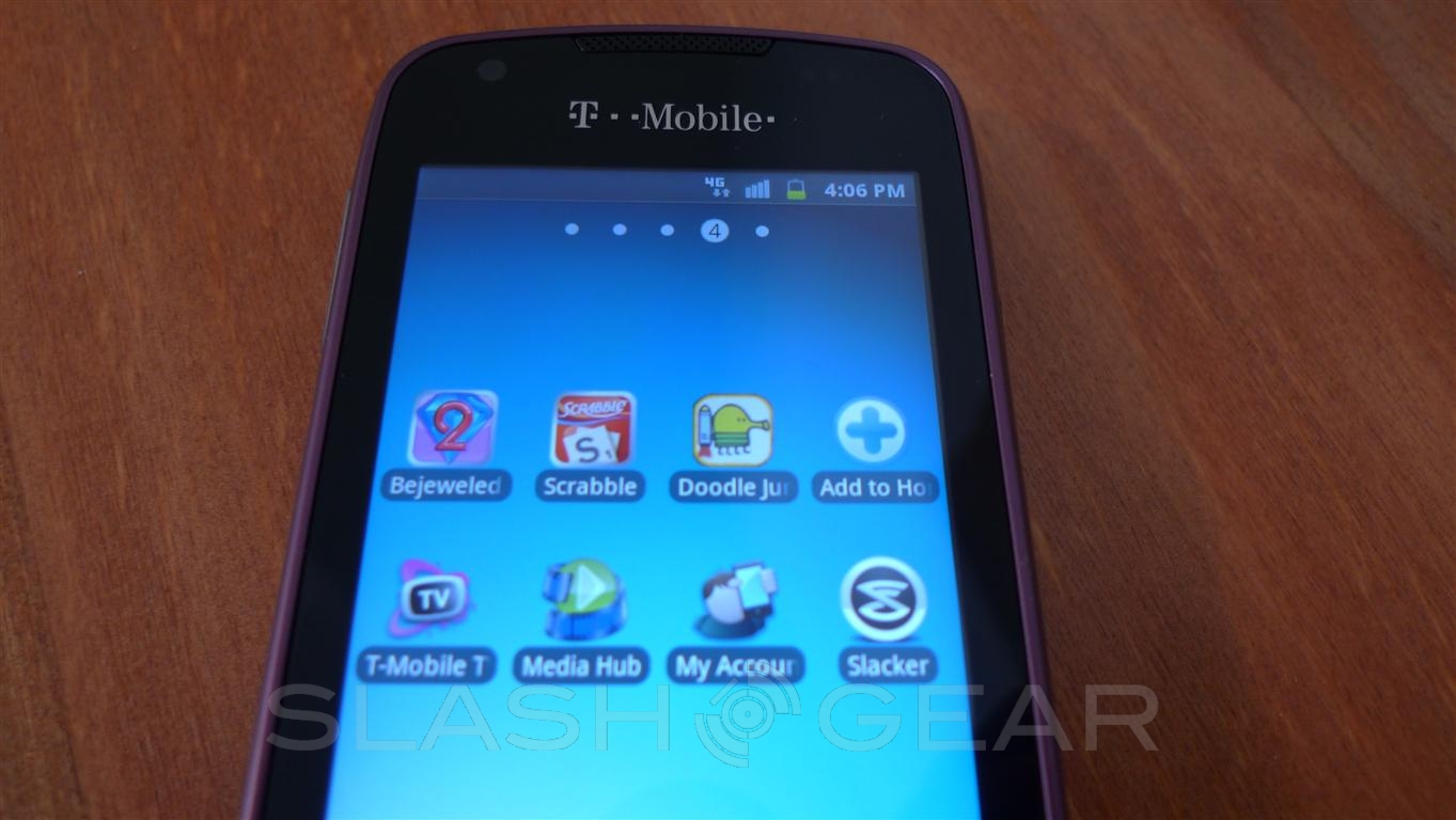 Out of the gate is actually comes pre-loaded with a few applications that are actually worthwhile and not what I'd consider "bloatware". Pre-installed you have a few popular games like Bejeweled 2, Scrabble, and Doodle Jump as well as all those usual T-Mobile apps like T-Mobile TV. It is nice to see it come with apps that will be of some use to many buyers rather than just loaded with nonsense.