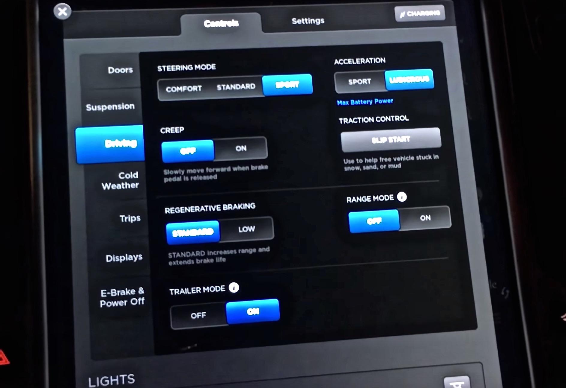 Tesla's firmware upgrade is also shown to give drivers a bit more control over their cars, both inside and out. Fully automated door controls. for both the front door and the Model X's iconic falcon doors have been added to the dash. The settings now also include a "Very Low" ride height adjustment, believed to only be available when the car is cruising at a certain speed. And for those that have purchased the Subzero Weather package, a new "All Off" button has been added to the environmental controls.