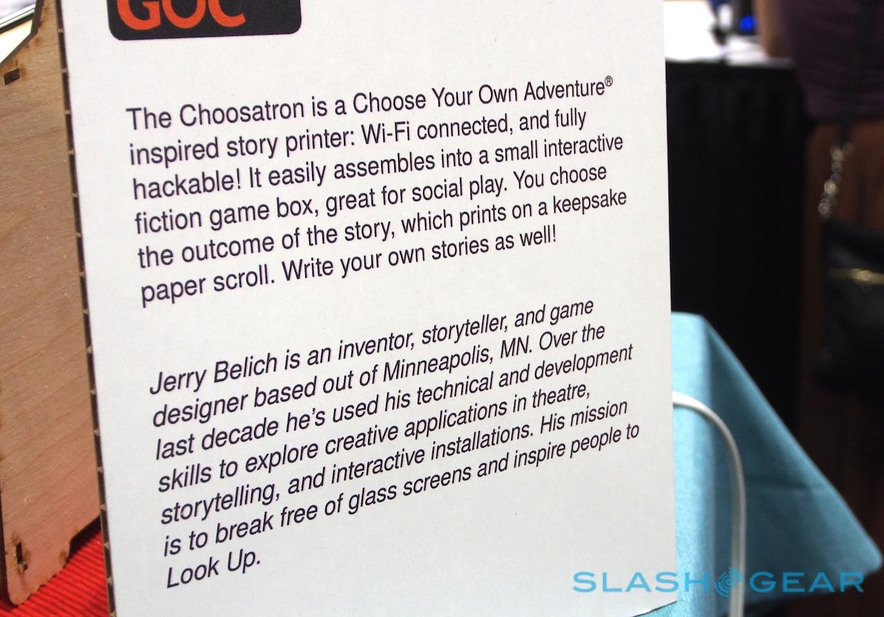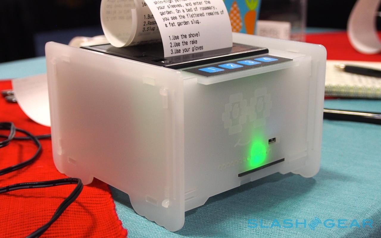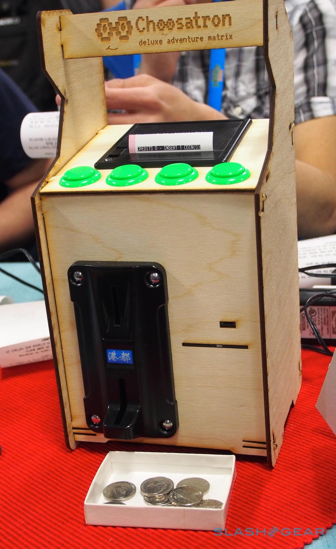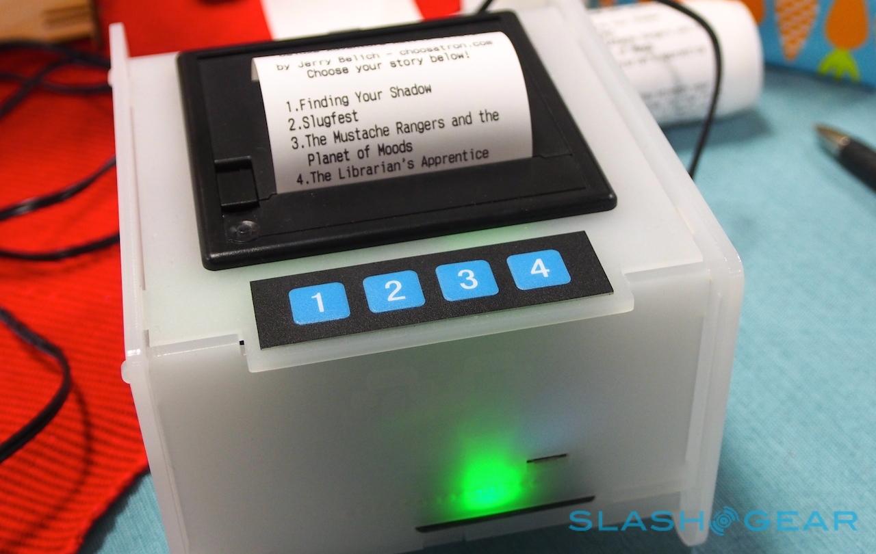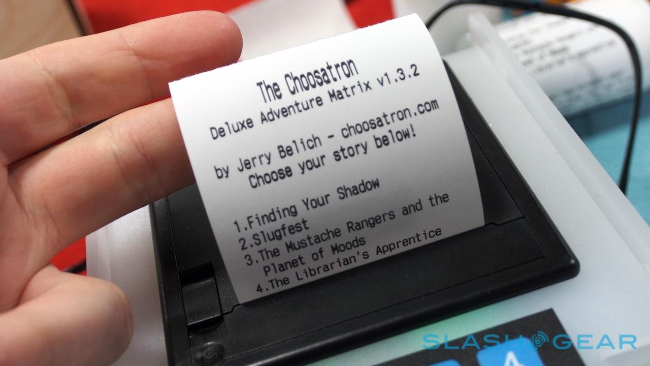 At GDC 2014 we're getting our very first up-close look and feel of The Chooseatron, a built-it-yourself mini-arcade kit. This is no ordinary video game, mind you, it's a multiple-choice text-based adventure that works with a tiny printer and paper on which you'll find your adventure printed. This is like printing your own Choose Your Own Adventure right before your eyes.