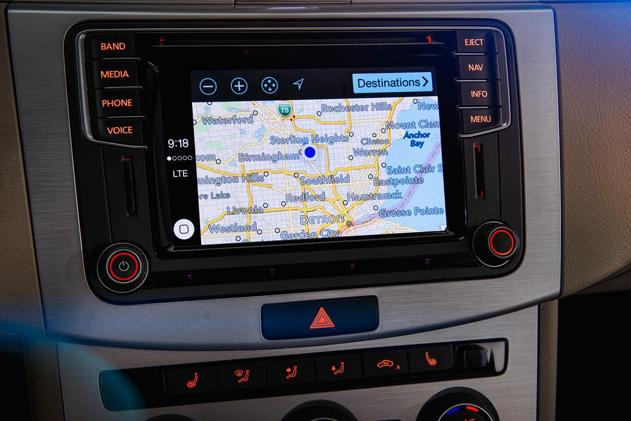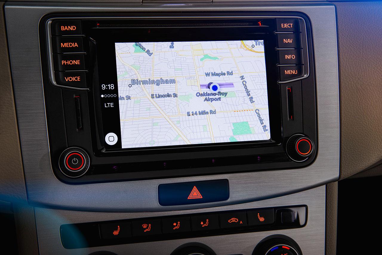 Finally, the 2016 e-GOLF SEL Premium gets Discover Pro, with an 8-inch capacitive touchscreen, one-shot point-of-interest entry, 3D navigation, 10GB of integrated storage for digital music, the ability to see electric car range on the map, a DVD drive, and drag-and-drop waypoint control.