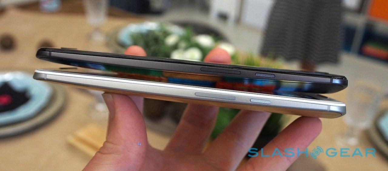 It feels thinner in the hand, then, and disguises the extra bulk. There's no arguing that the screen upgrade is worth it, too: 423ppi and incredibly bright and well-balanced, it has natural colors and deep blacks. Minimal bezels on the left and right help, as does the contrasting aluminum frame which pulls the eye. It's a little like the HTC One M8 from some angles, no bad thing in itself.