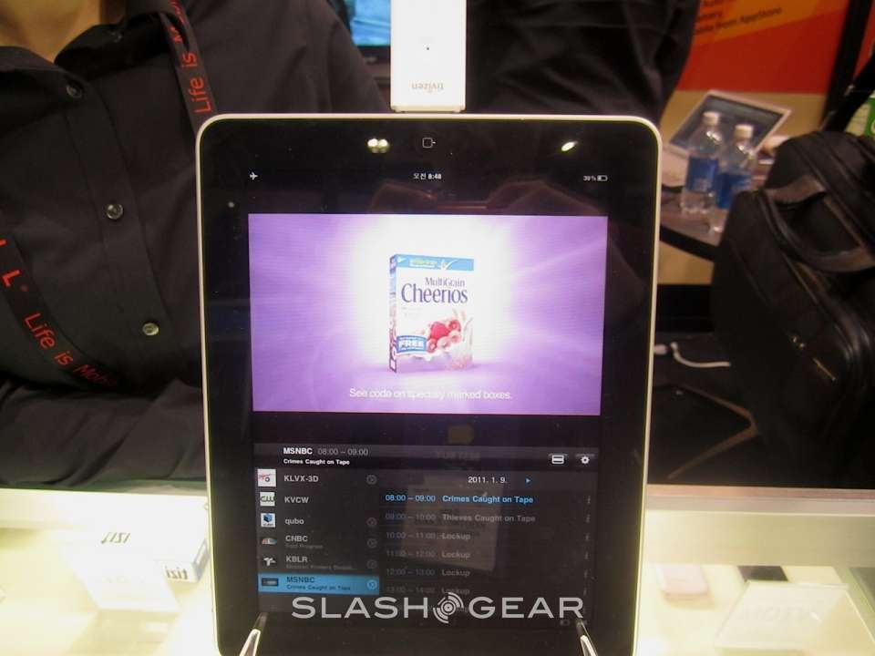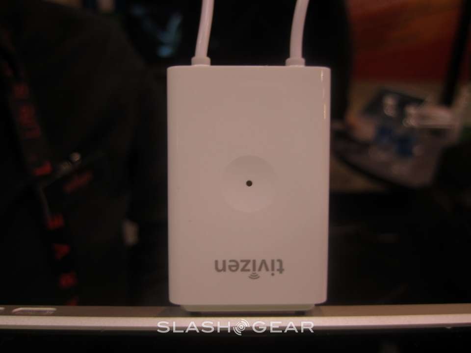 It will support models iPod Touch models 2nd Generation and above, iPhone 3G/3GS/4, and the iPad. The dongle requires a USB micro AB for recharging and should operate for ~2.5 hours until a needed recharge. Because of the receiver has its own battery, it won't leech all the power out of your portable device. The Tivizen dongle will be available for $99 within the next few months.
