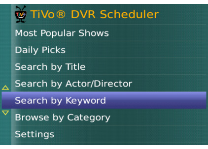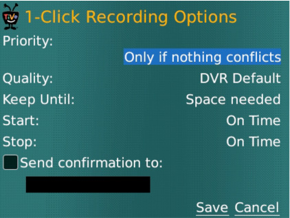 Both single record and "season pass" are available, and you can search by actor, keyword or title. Unfortunately there's still no way to stream content from your TiVo to your BlackBerry, but if you're the forgetful sort that is always missing shows because you neglect to set the DVR before you leave the house, TiVo for BlackBerry seems worth a try.