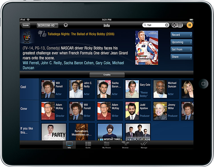 The TiVo Premiere App for iPad includes: