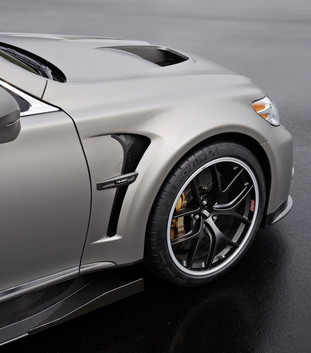 Brembo carbon ceramic brakes help rein things in when you run out of tarmac, clamping down on special lightweight 20-inch wheels, and there's multi-link suspension with coil springs and Sachs dampers. TMG isn't talking pricing yet, but tells Motor Authority that production of the TS-650 could get the green light if there's sufficient interest.