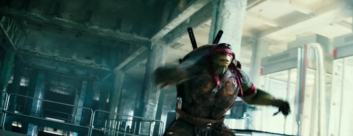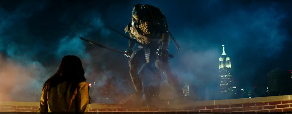At a touch over 1:40 minutes long, the trailer is a mixture of both new footage and clips we've seen rehashed through past trailers and TV spots. Most notably, all four turtles are given close-up shots, and The Shredder has a rather close-up lingering profile shot, as well as a brief full-body moment in a broken wall.