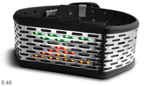 The central body of Fire is stainless steel, with the holes machine drilled into its polished surface. Around that is a plastic cladding, with an easy-open buckle and adjustable strap. Each hole, with two LEDs beneath the surface represents one unit of time. Yellow LEDs indicate the hours 1-12, red LEDs indicate groups of 10 minutes and green LEDs indicate single minutes 1-9. Perhaps next time Tokyoflash will offer a partner-watch with integrated calculator, to speed up the adding process.
