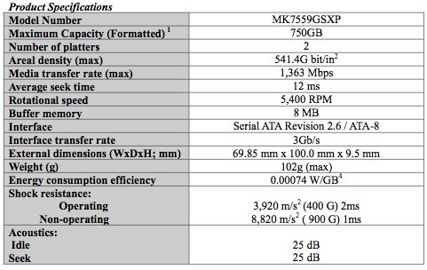 They also all have 8MB of cache, SATA 3Gb/s interfaces and 12ms average seek times, and Toshiba reckon that – thanks to their "silent seek" technology – they're as quiet when active as they are when idling. No word on pricing, but the MKxx59GSM drives should show up in Q2 2010, while the MK7559GSXP is expected to follow on in Q3 2010.