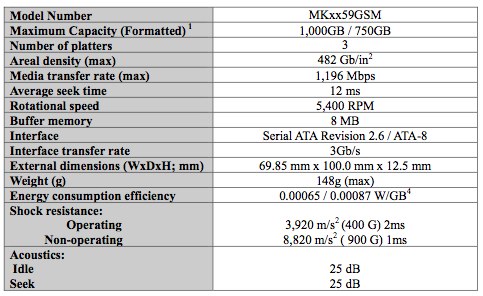 At 12.5 millimeters-high, the MKxx59GSM series is geared to external add-on and removable storage, tape replacement and docking station applications, as well as addresses the escalating demand for capacity and portability in gaming notebooks, mobile workstations and other capacity-hungry applications. The 1TB MK1059GSM model can store up to 285,000 digital photos, 263,000 digital music files or 820 digital movies2.