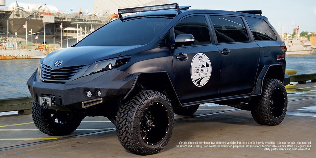 That leg spanned 110 days and nine vehicles drove 16,500 miles through some of the toughest conditions in North America. The UUV is a Toyota Sienna van that is retrofitted onto a Tacoma truck chassis.