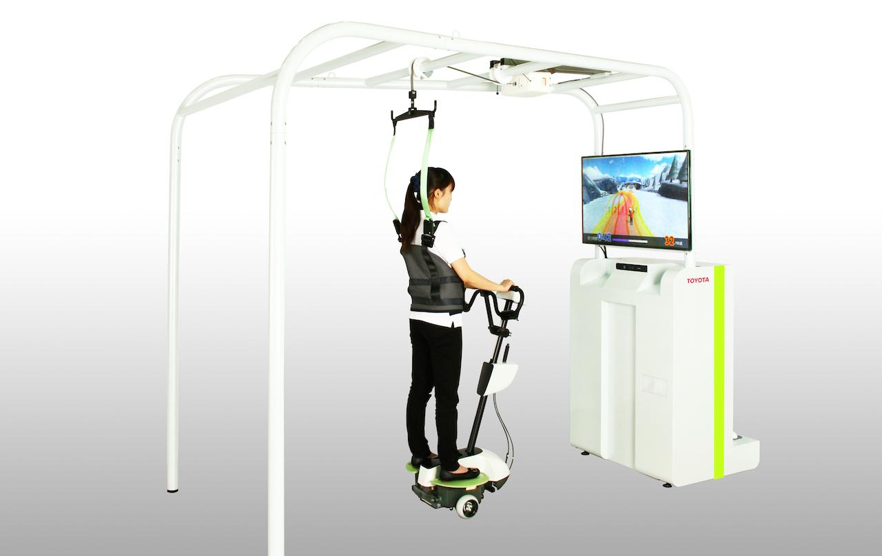 As for the Balance Training Assist system, that uses a Segway-style "Winglet" personal transport device on which the patient balances, with their movements controlling an on-screen character similar to a Nintendo Wii Balance Board game. Toyota has added in skiing and rodeo activities to the existing tennis task, which encourage shifting of the center-of-gravity. Responsiveness has also been boosted, while difficultly levels now automatically adjust depending on how far through rehab the player is.