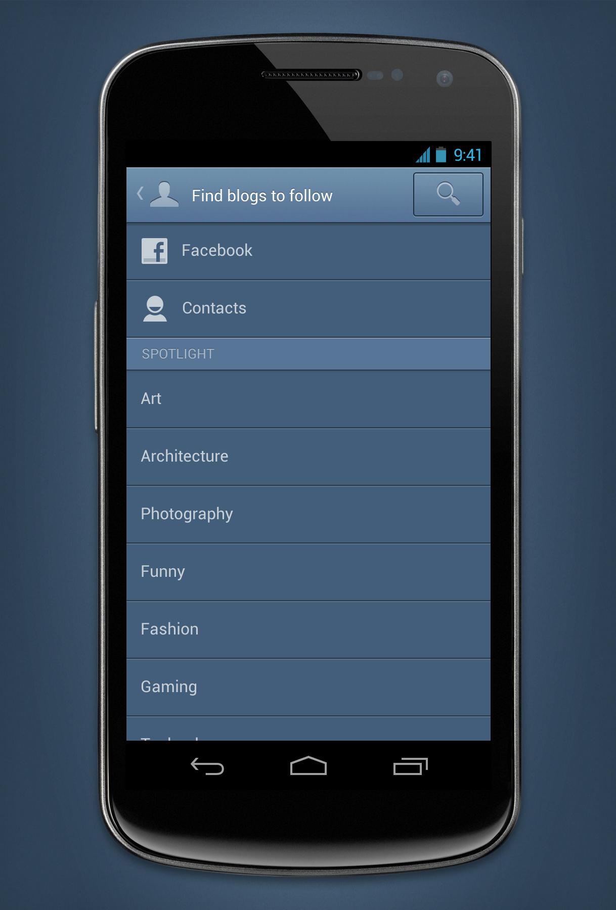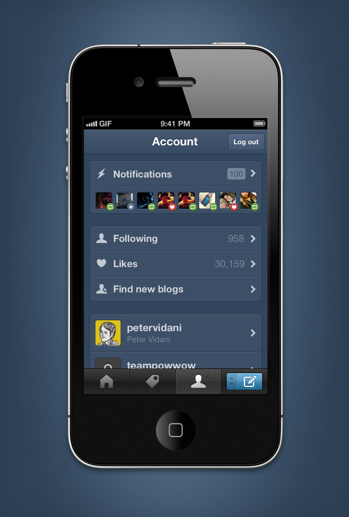 Allow the new Tumblr apps to look through your phone contacts, or dip into your Facebook friends list, and it can pull out possible blogs from friends that you might not already be following. There's also the ability to sign up to a new Tumblr account from within the app.