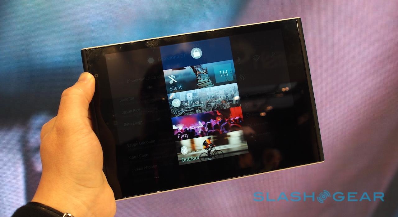Pull down from the top, and you can switch between different modes, or scenes. For instance, Jolla had demo devices set up with three modes – Work, Party, and Outdoor – which could either be left to automatically switch between on a schedule basis, or be manually selected.