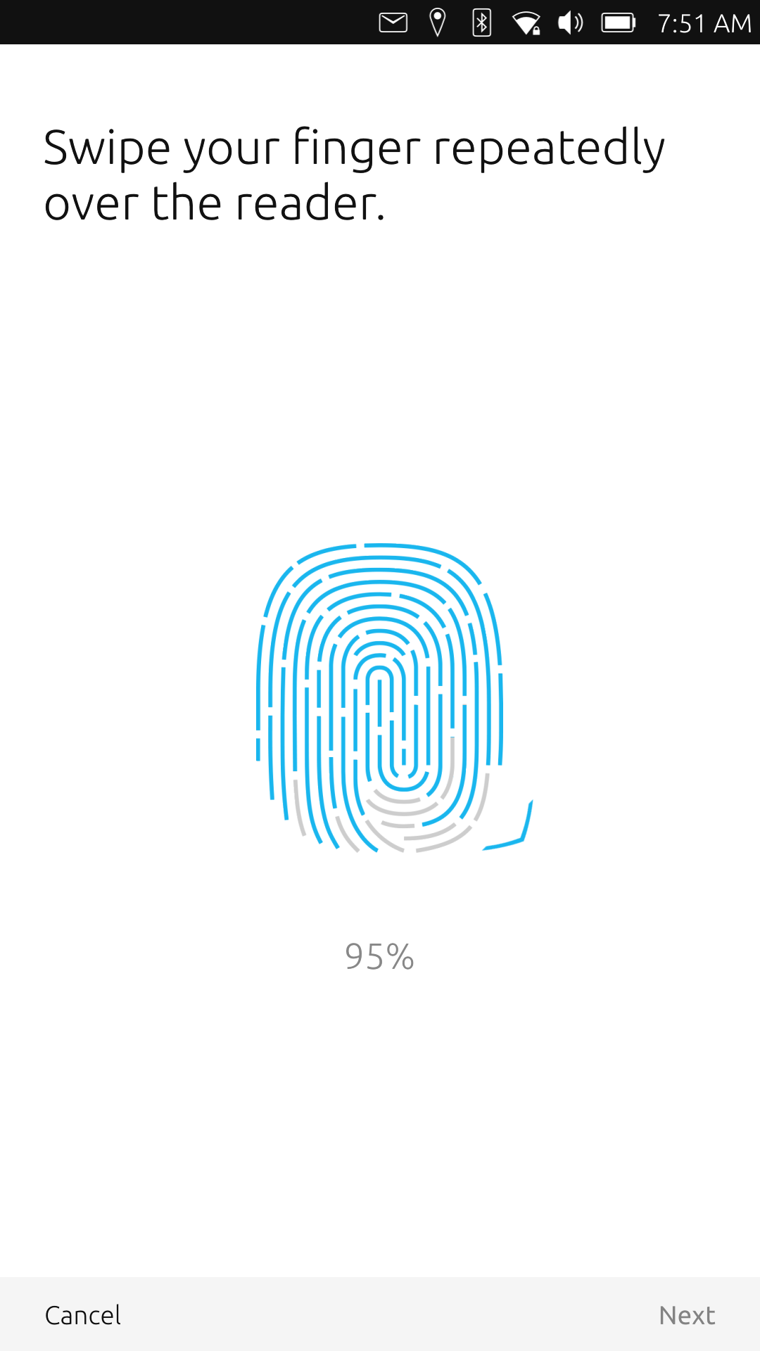 Another big new feature for the Meizu PRO 5 is the addition of biometric security, specifically, support for a fingerprint scanner. This is the first time Ubuntu Touch ever got this feature. Coincidentally, the PRO 5 is also the only Ubuntu Touch device that has the hardware. Again, it's a significant step forward in getting Ubuntu Touch to support modern hardware features. Fingerprint detection appears to be quite fast and accurate, but setting it up is actually quite a pain. It tells you to swipe across the sensor, but only after you're reached more than 40% does it indicate which directions. It's also a bit random. Sometimes simply placing your finger over the sensor works. Sometimes repeatedly swiping your finger slowly over it doesn't work. It seems you can only save up to five fingerprints, but it won't tell you that. The sixth fingerprint will fail, but only after you've gone through the grueling process from 0 to 100%. Hopefully, you'll only have to setup your fingerprints once.