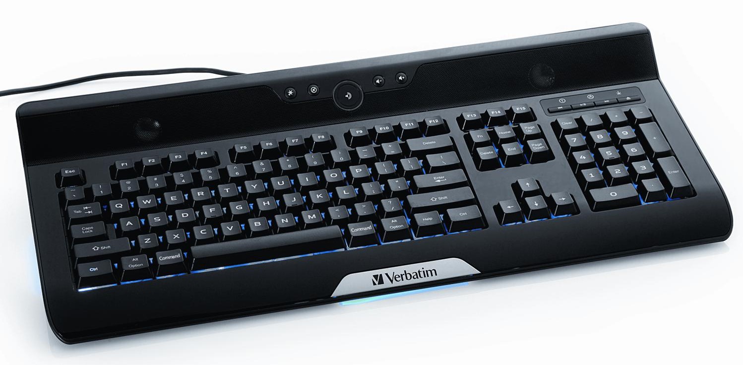Verbatim have announced two new wireless mice and a keyboard with integrated speakers. The Verbatim TuneBoard keyboard has iTunes control keys, switchable backlighting and bass boost, as well as offering headphone and microphone connections and a built-in microphone.