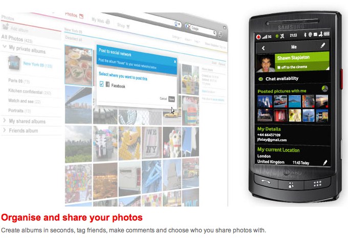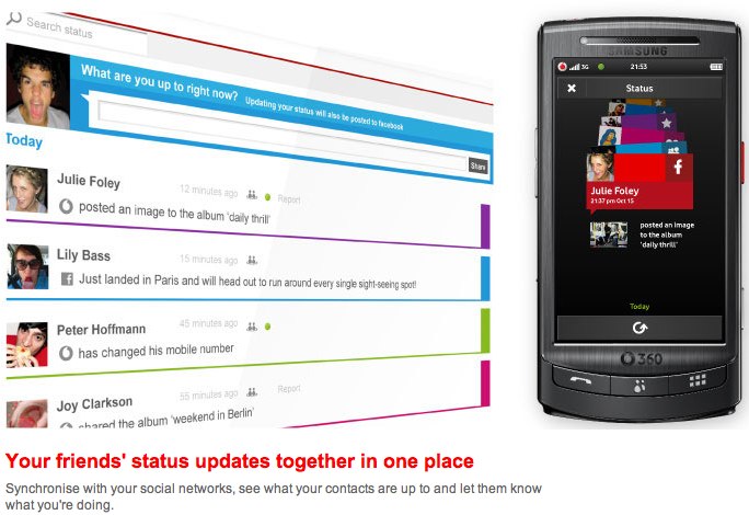 All of a customer's contacts, status updates and messaging services are brought together in one place enhancing the customer's experience and use of social media. Customers will have integrated contacts, music, photos and mapping services and can share their favourite music choices and even their physical location, how and when they choose, with their chosen groups of friends.