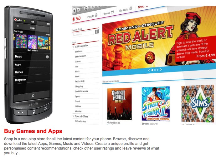 a catalogue of over one thousand Apps at launch available to different handsets, downloadable through the Vodafone Shop