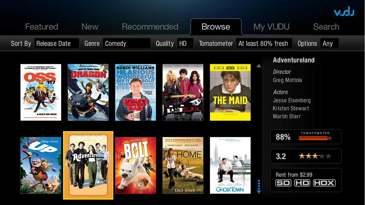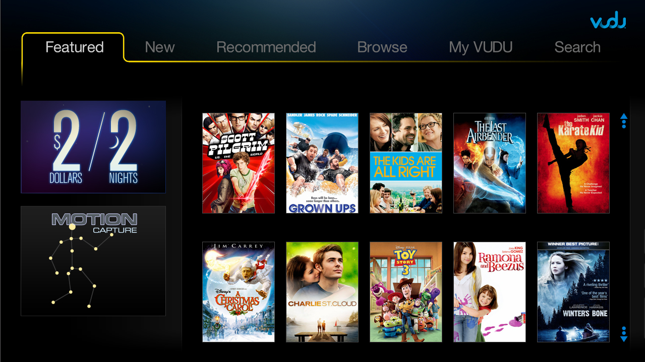 As you know from back in November when it was totally teased, VUDU is releasing its 2.0 user interface soon – turns out soon is today! This new version features a new system based on tabs, employing personalized recommendations, and including enhanced browse and filter capabilities. Also included in this update is support for motion-based input devices like PS3 Movie, mice, and pointer remote controls.