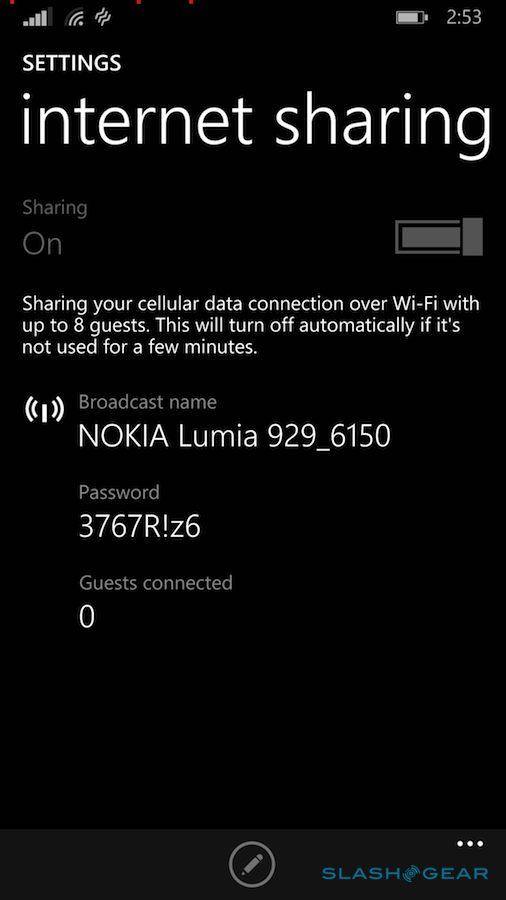 The downside to that, of course, is the reliance on the app. In short, you can share connectivity with other Windows Phone 8.1 users, but those on iOS or Android will still need to be given the passcode.