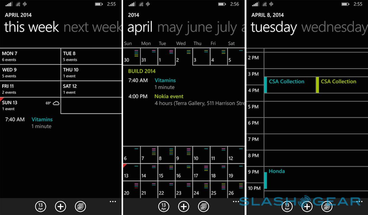 Windows Phone has always been comparatively spartan in its visual gloss, even in comparison to iOS 7's flatter UI, and so we had some concerns around how that would hold up as apps like Calendar try to fit more information in.