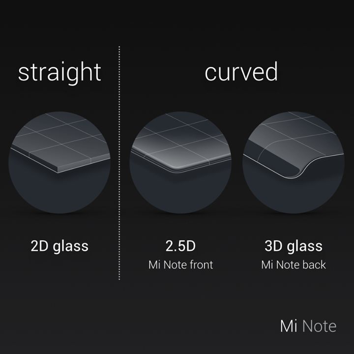 Unlike the stylus-bearing Galaxy Note, Xiaomi's "Note" has become synonymous with its phablet line. This Mi Note is no different, sporting a 5.7-inch screen made by Sharp and JDI. Sadly, Xiaomi isn't yet crossing over to the 2K field, so this one comes with 1080p only. At least one of two versions is. That said, Xiaomi wants you know that it hasn't exactly been skimping on the display. Instead, it is flaunting its curves, its glass curves, that is. The front panel is noted to use a "2.5D" curved Gorilla Glass 3 with a very slim 3.0 mm bezel while the back is also coated with glass but with a bigger "3D" curvature. How this translates into practice needs some real-world hands-on testing, but the Mi Note certainly isn't the first or only smartphone with a 2.5D glass display.