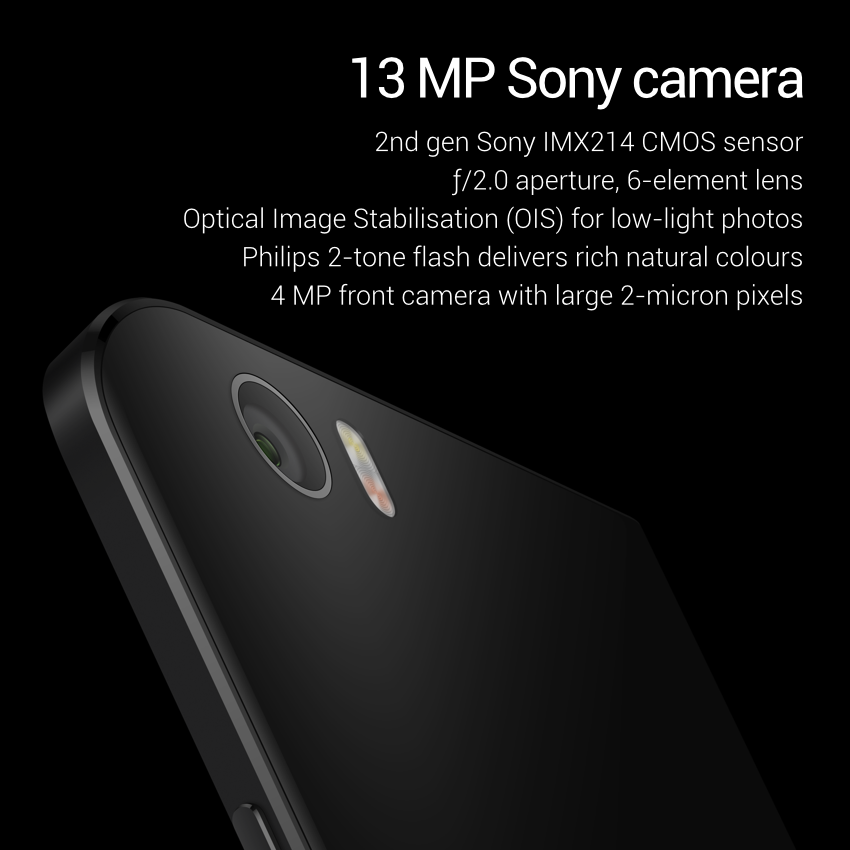 If you find the display merely passable, Xiaomi wants you to turn your attention to the cameras instead. They're not going to win any megapixel count contest, but both front and back cameras have a story to tell. The 13-megapixel rear shooter uses Sony's 2nd gen IMX214 CMOS sensor and boasts of that coveted Optical Image Stabilization technology. It is assisted by a dual flash setup from Philips, a 2-tone flash that promises to deliver more natural colors. And while the 4-megapixel front camera isn't exactly the highest selfie-friendly one, Xiaomi boasts that its 2-micron pixels is so much better than those because of the larger pixel sizes. Technically, this is the same "UltraPixel" format that HTC has been singing about in the HTC One (M7).