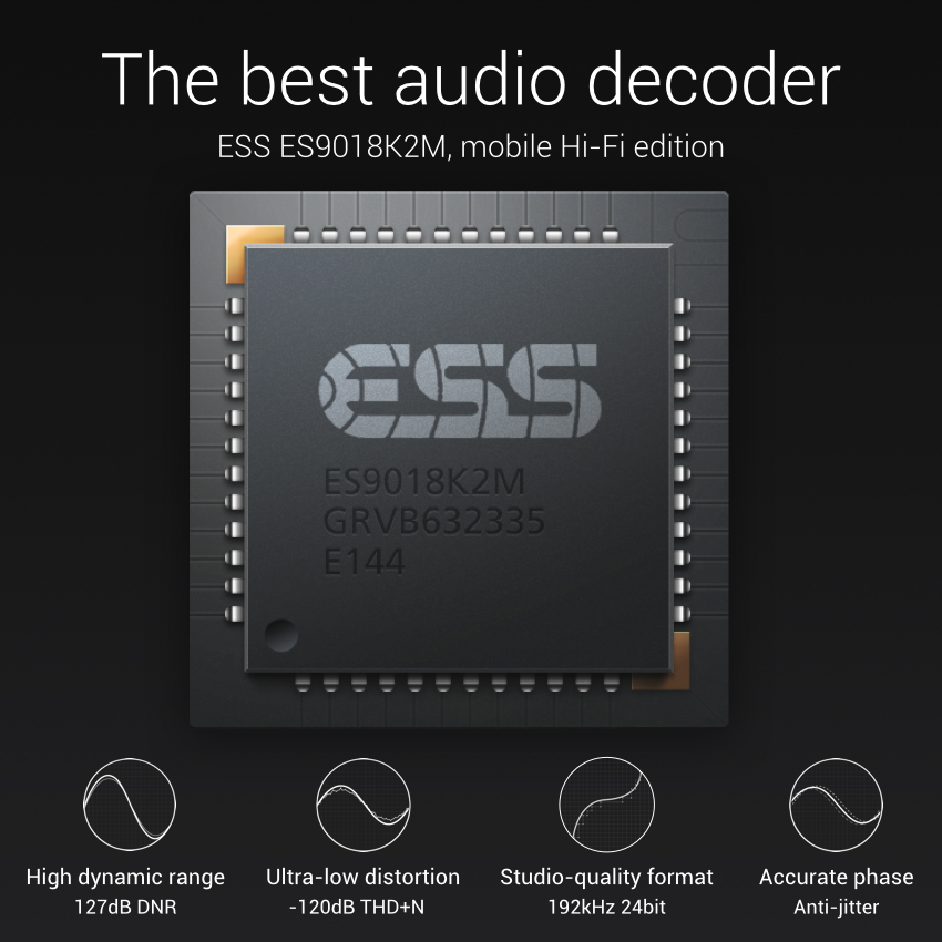 And if you've gotten bored of displays and cameras, you might believe that audio is the next smartphone frontier and Xiaomi is with you there, too. While displays are getting higher and higher def, audio is now also going hi-def, or hi-fi to be exact. The Mi Note supports playback of hi-fidelity 24-bit/192 kHz lossless audio, like those in FLAC, WAV, or DSD formats. This is thanks to the ESS ES9018 inside, one of the more popular DAC audio decoders around. And to complement that, Xiaomi has also announced the Mi Headphones with large 50 mm berylium diaphragm speakers, super low 32-ohm impedance, and silver-plated straight cable.