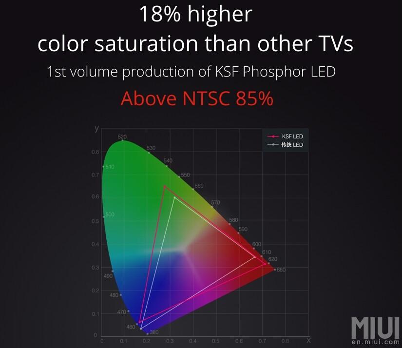 As for the display itself, the 48-inch screen employs Samsung's True 4K Display technology. Somewhat ironically, Xiaomi then later claims to surpass Samsung, as well as Sony and Sharp, in areas of clarity, color saturation, and contrast. With colors specifically, it advertises support for more than 85 percent of the NTSC standard. All without light leaking out from the backlight module.