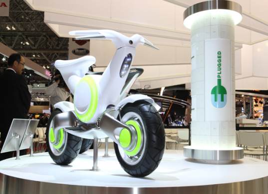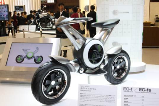The smallish little bike was unveiled at the Tokyo Motor Show and is designed for riders of all ages and experience levels. I would assume that to mean it is small, slow, and relatively robust to survive the inevitable drops. The EC-f has a lightweight aluminum frame and runs on a lithium ion battery.
