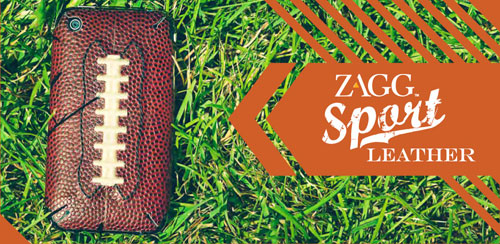 Zagg has two sportLEATHER back protection skins made from real leather with genuine textures. The skins can be had in white baseball leather with red stitching just like the real deal. You can also get a football skin with the correct pigskin texture and fat white laces.