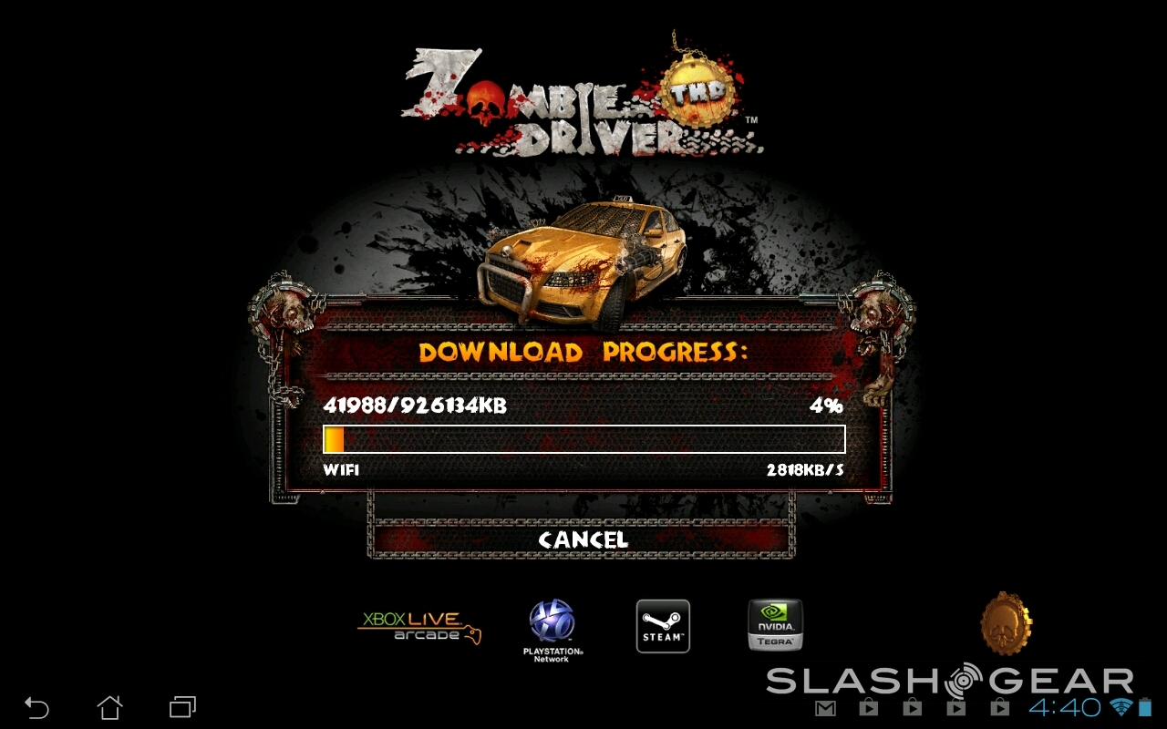 It's time to have a peek at the next big smash gaming experience developed for the Tegra 3 quad-core environment on Android: Zombie Driver THD! This game brings on what the developers at Exor Studios make clear is "massive amounts of zombie carnage and unprecedented destruction effects." And that it is, folks, we've had our own peek at this game and can readily assure you – there's no better way to spend your late night candy-filled sugar coma this Halloween (tonight or whenever you just so happen to want do down a bunch of Snickers bars) than to slay some zombies in a destruction derby-style massacre.