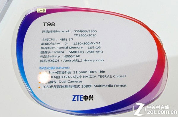 ZTE T98 Tablet Packs In Tegra 3 And Android