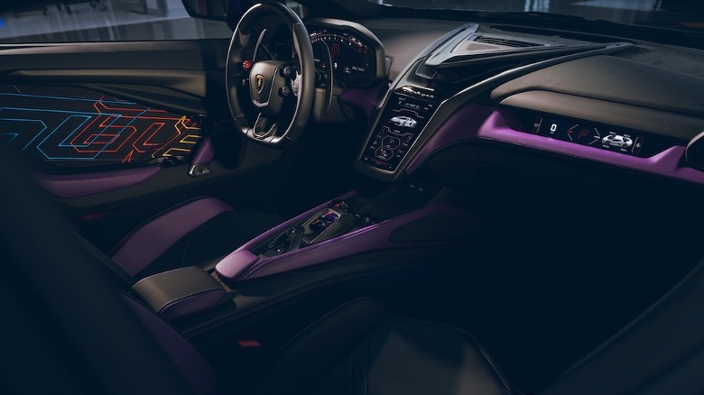 The paint scheme on the showcase Revuelto is hand-painted (yes, you read that correctly). It is the culmination of 731 total hours of work. Of those hours, 435 were just to paint the exterior, ensuring that every brushstroke is absolutely perfect. Just sitting still, the paint scheme not only makes the Revuelto look like it's going 200 miles per hour, but also like it's traveling through space. Needless to say, it's a one-off design, unless you wanted to pay a team of artists to spend more than 18 total days to paint your car and over nine days just to get the interior right.