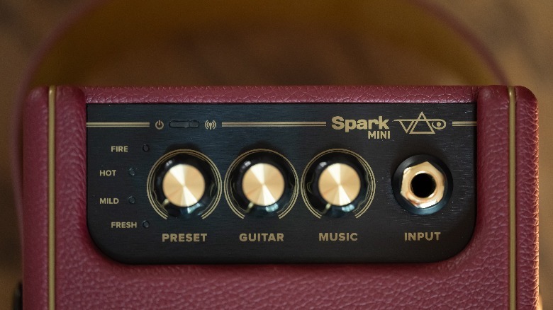 A key aspect of the Spark Mini Vai is its exclusive custom tones, labeled as "fresh," "mild," "hot," and "fire" on the selector knob. "Fresh" is basically just a very clean tone, while "mild" lets the natural sound of the guitar shine through while adding some lovely subtle textures and a bit of grit if you want it, which I found pairs very nicely with acoustic guitars. Hot piles on the distortion, and fire is as gnarly as the name implies (great for solos). All together they serve a wide range of applications, with "mild" being my personal favorite for its pleasant sounds and versatility.