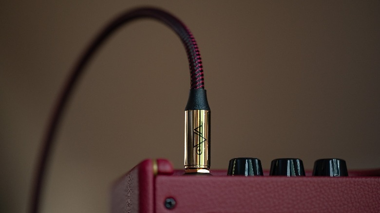 If you like burgundy, this is the amp for you, and so it's certainly the amp for me as I'm quite fond of burgundy. Both the tolex exterior of the amp and the custom woven guitar cable it comes bundled with are burgundy, with the cable ends featuring Steve Vai's logo. This logo is also to be found on the control panel of the amp itself. The profusion of burgundy extends to the included detachable handle, with gold lettering and accents on the amp creating a highly attractive contrast.
